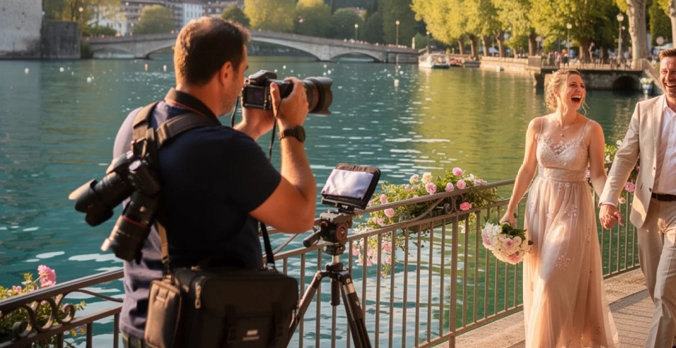 Dès les premiers échanges avec les mariés, prenez le temps de détailler l’emploi du temps de la journée, en intégrant des marges de sécurité pour les déplacements. Un trajet qui prend 15 minutes en hiver peut facilement en demander 30 ou 40 un samedi de juillet autour du lac d’Annecy. Il est souvent judicieux de regrouper les lieux de prise de vue dans un même secteur géographique : vieille ville, Jardins de l’Europe et Pont des Amours peuvent par exemple s’enchaîner à pied, limitant ainsi les déplacements en voiture et le risque de retard.